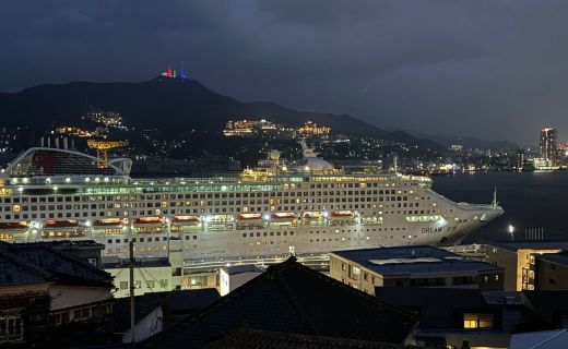 グラバー園から見る夜の長崎港。豪華客船が入港していました