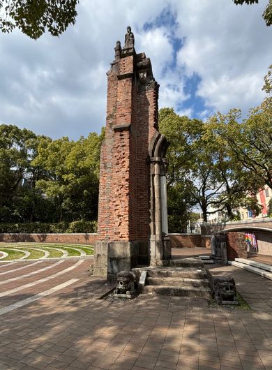 対面の丘に見える浦上天主堂 レンガ造りが美しい