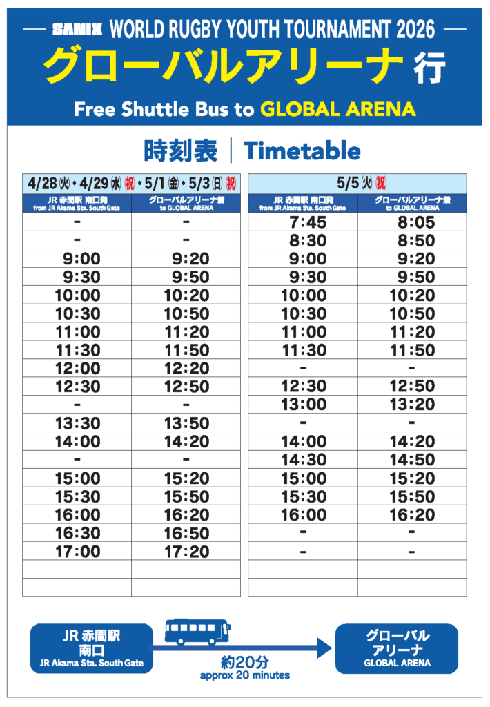 いかがでしたか。ゴールデンウィークにグローバルアリーナへでかけてみませんか。ぜひ生のラグビー観戦、体験してみてくださいね。